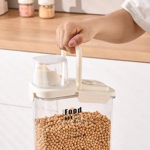 STRUCTURE DESIGN: It's designed with an ergonomic handle for easy carrying. The bin body has a standard scale; each kitchen storage box is equipped with a pour spout and a measuring cup, so you can pour quickly and accurately.